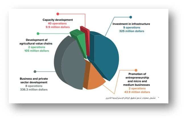 Funding in the First Year of the 2030 Strategy BADEAfinanced 61 operations of about US$ 820 million, benefiting 20 African countries and covering all the strategic focusing areas as follows: Trade and private sector development : US$ 336.3 million Investment in infrastructure : US$ 325 million. Agriculture value chains development: :US$ 105 million. Entrepreneurship and SMEs development: US$ 43.9 million. Capacity development : 9.9 million dollars