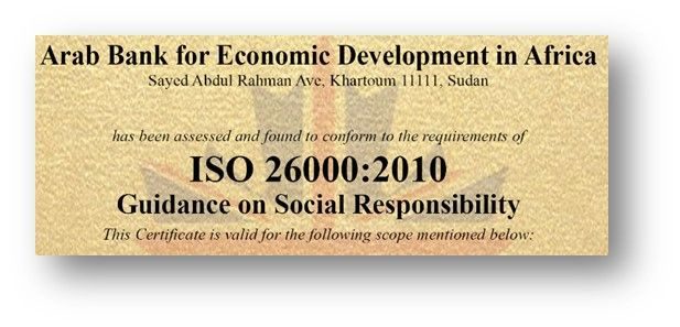 ISO 26000, 14001 & 37000 Certificates Through the improvements implemented in compliance and integrity, BADEA was able to obtain ISO 26000 certification (Social Responsibility), ISO 14001 certification (Environmental System Management) and ISO 37000 certification (Governance of organisation & Guidance).